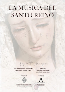 El próximo sábado 4 de diciembre, tendrá lugar en la Casa de Hermandad de la Hermandad de la Amargura de nuestra ciudad, una ponencia sobre música titulada "La Música del Santo Reino". La ponencia será ofrecida por D. Juan Ramón Fuentes Ferrer y D. José Carlos Piñar Fuentes, director y subdirector respectivamente de la Sociedad Filarmónica de Jaén.